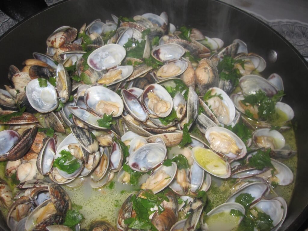 Ameijoas à Bulhão Pato com alho, vinho branco, limão e coentros. Receita rápida, simples e cheia de sabor tradicional português.