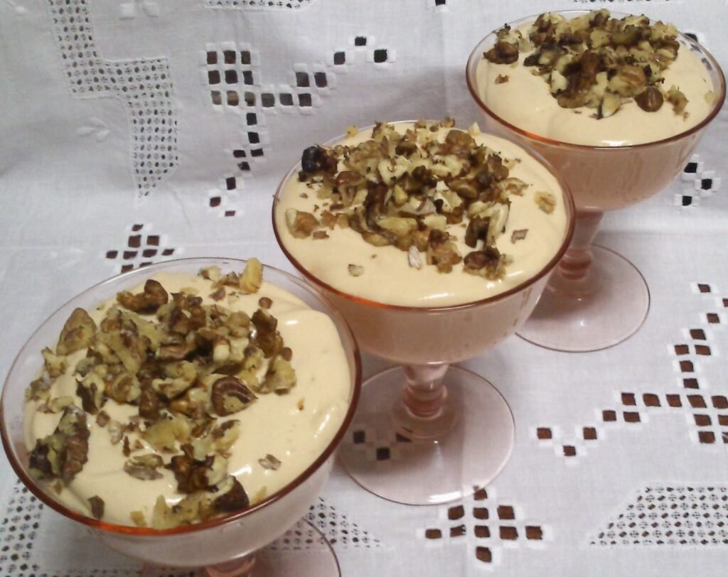 Mousse rápida com leite condensado cozido, natas e claras — cremosa, leve e perfeita para aproveitar sobras. Simples, fresca e pronta a servir com noz.