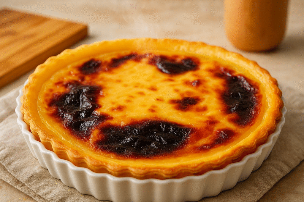 Uma tarte simples e deliciosa, com massa folhada estaladiça e um recheio cremoso de leite, ovos e baunilha. Perfeita para qualquer ocasião e muito fácil de preparar. Ingredientes 1 massa folhada1/2 litro de leite200 g de açúcar 3 gemas de ovo3 colheres de sopa de Maizena1 colher de café de essência de baunilha Preparação Forre